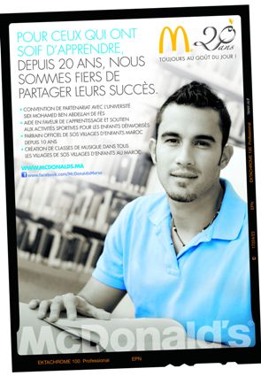 McDonald’s Maroc appuie les jeunes citoyens dans leur formation académique. Ainsi, une convention de partenariat a été signée en janvier 2012 entre McDonald’s Maroc et l’Université Sidi Mohamed Ben Abdellah à Fès. McDonald’s Maroc a alloué un budget à l’université pour la création d’une nouvelle Licence Professionnelle en Tourisme, Patrimoine et Communication, une filière d’étude qui a toute son importance dans la région de Fès. Dans le cadre du programme de développement du tourisme et de la promotion du patrimoine de la région à l’horizon 2015, cette nouvelle filière apportera les compétences nécessaires aux étudiants. Les fonds alloués serviront à assurer une partie de la masse salariale des enseignants et à équiper l’établissement du matériel informatique nécessaire. McDonald’s Maroc s’engage également à offrir des stages aux étudiants de cette filière et à les accompagner dans leurs projets de recherche en leur faisant bénéficier de son savoir-faire.