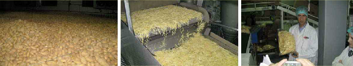 Les journalistes ont ensuite découvert les différentes étapes de transformation de la pomme de terre en frite.Après lavage et nettoyage, chaque pomme de terre, est épluchée par injection de vapeur, pour être de nouveau lavée,brossée puis contrôlée et triée.
